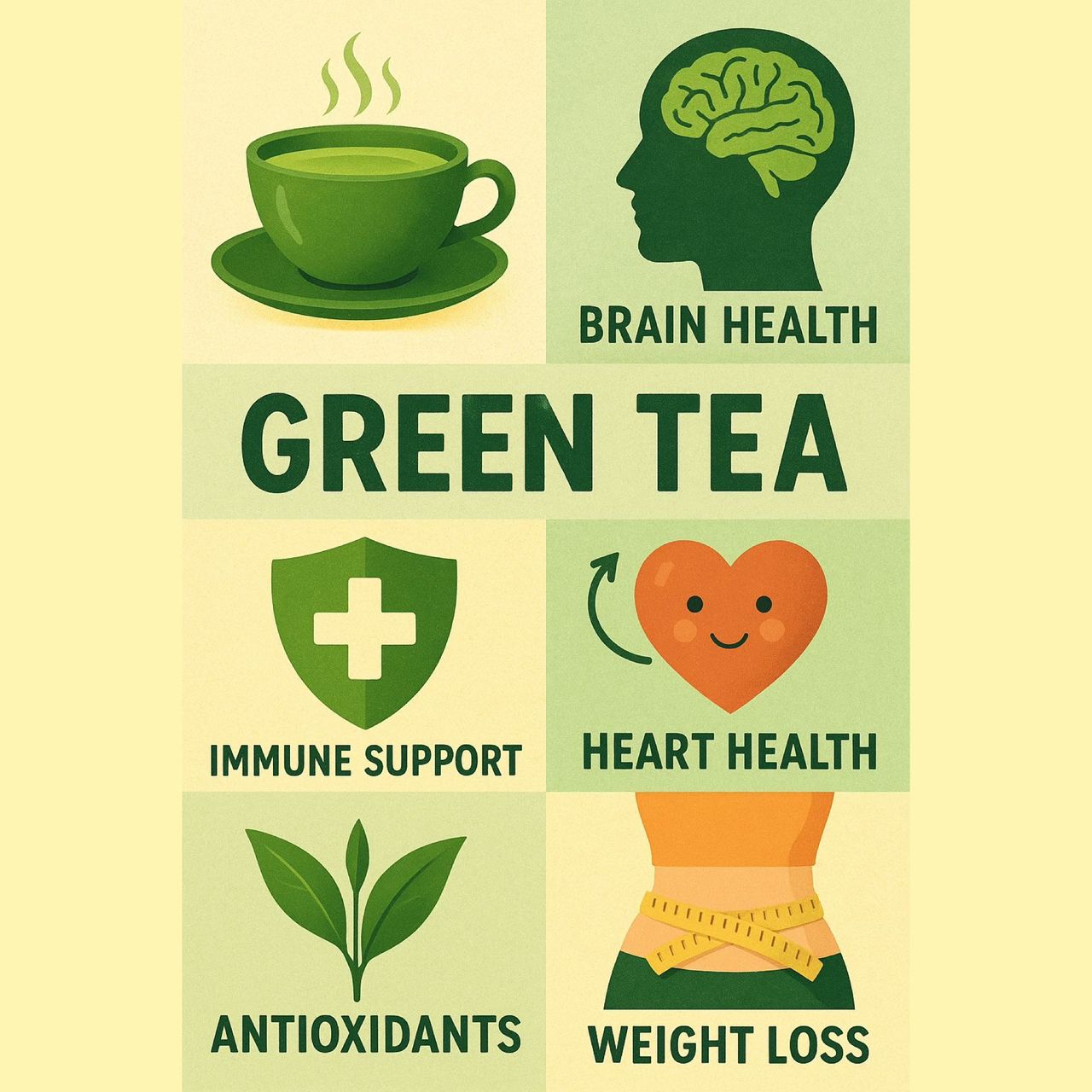 ترکیب کاتچینها و ال-تیانین موجود در چای سبز با بهبود عملکرد شناختی مرتبط دانسته شده است. مصرف منظم آن ممکن است حافظه، تمرکز و تواناییهای شناختی را افزایش دهد.
